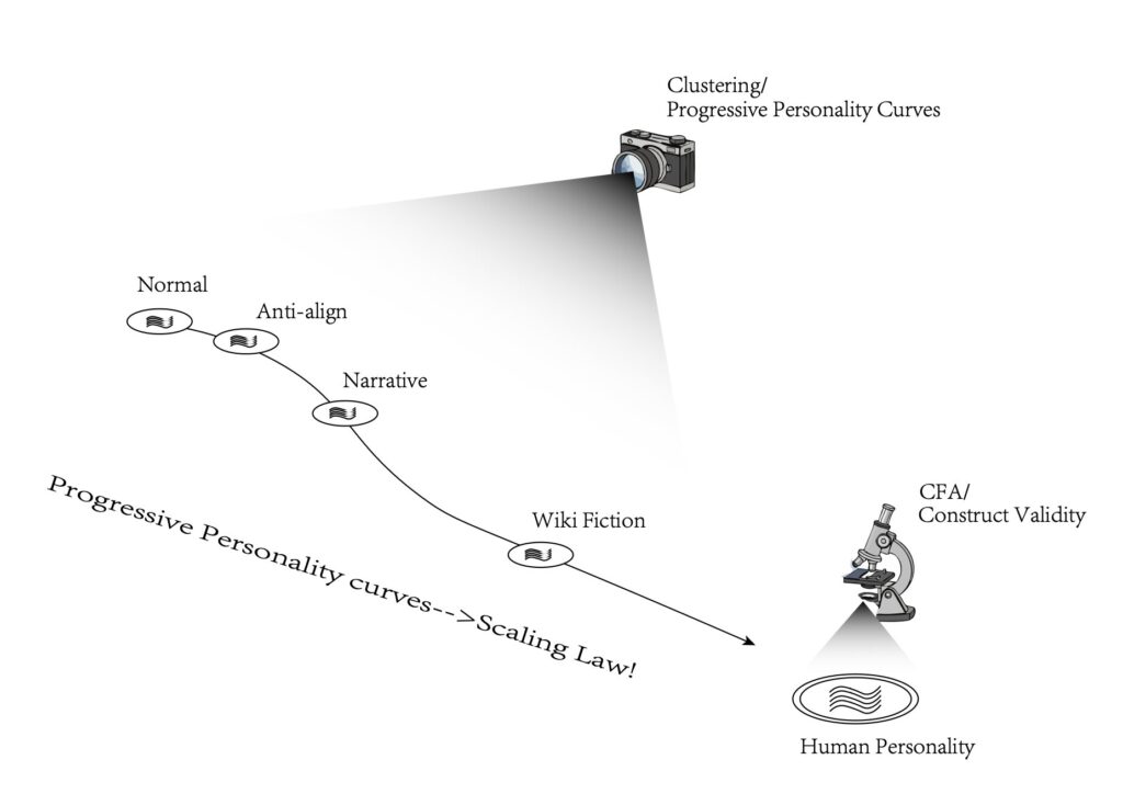 Figure outlining the team’s evaluation methodology aimed at catching the convergence of simulated personalities toward human personalities. Credit: Bai et